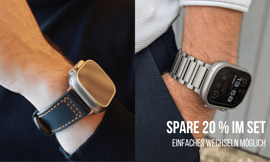 Set für Apple Watch Ultra | Titanband Magnet + Robustes Echtlederband Schwarz