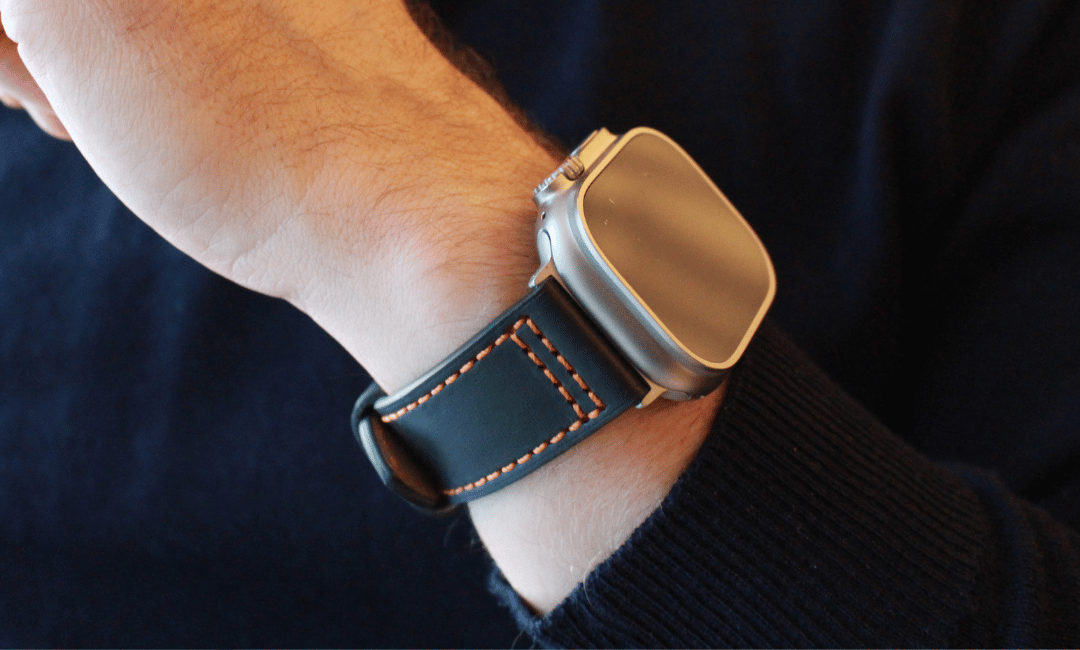 Robustes Armband für die Apple Watch Ultra aus Echtleder | Schwarz