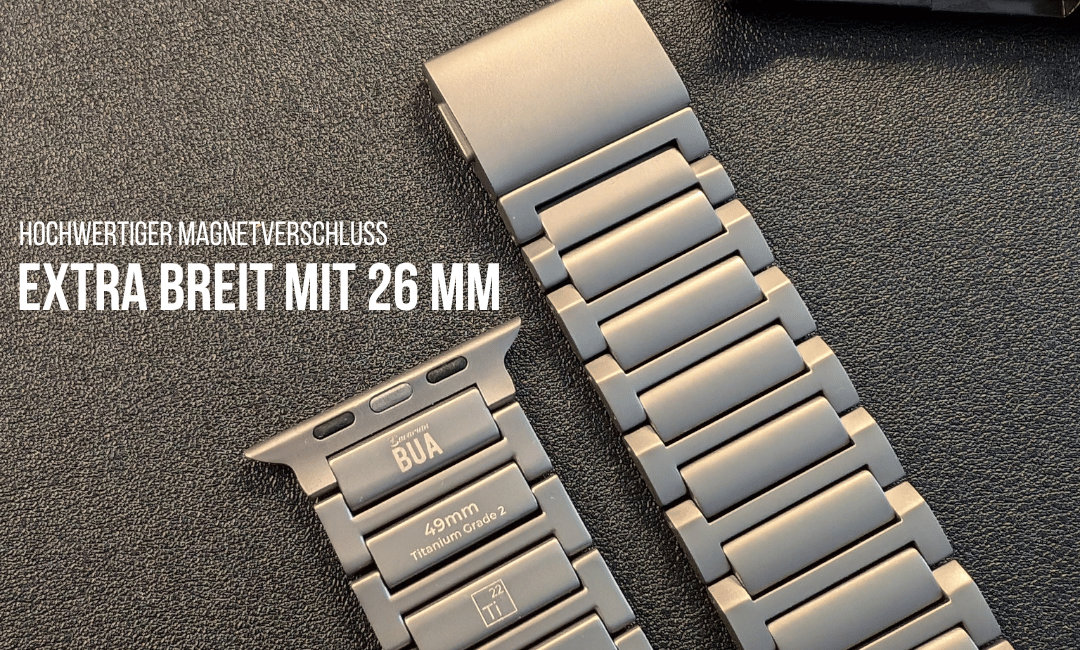 Stylisches und strapazierfähiges Titan Armband für deine Apple Watch. Jetzt in 26 mm Breite erhältlich! Das Armband ist ultra leicht und passt ideal zur Apple Watch Ultra 1, 2 und 3. Dank der aufwändigen DLC-Beschichtung ist es Armband langlebig und besonders robust.