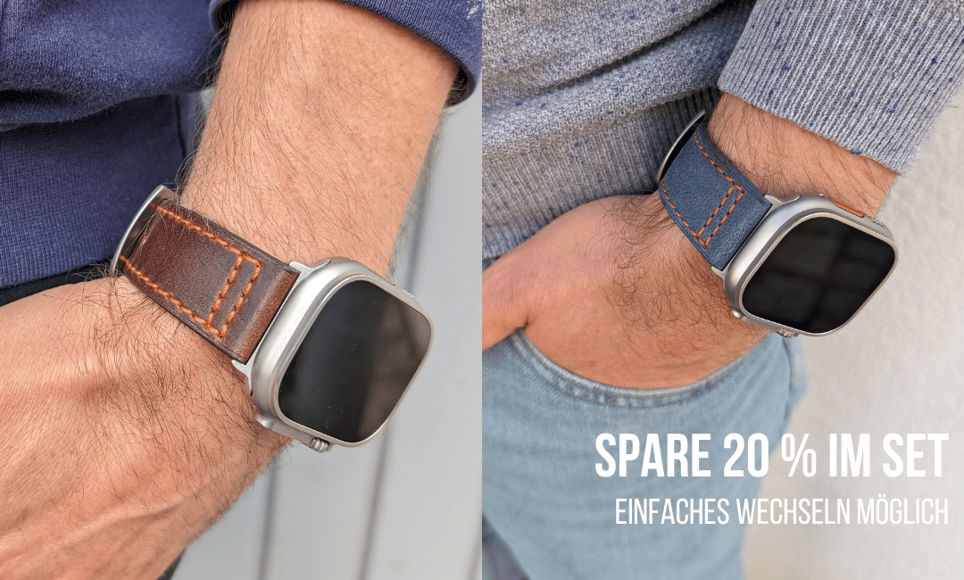 Unsere exklusiven Armbänder aus Echtleder wurden speziell für die Apple Watch Ultra 1, 2 und 3 entwickelt und passen perfekt zu deiner Watch. Sie sind super robust, etwas breiter als unsere Standardbänder, mit orangefarbenen Akzenten und sehr maskulin. Zudem verwenden wir hochwertige Adapter und Schließen aus Edelstahl in Titan-Optik, so dass du lange Spaß an deinem neuen Band hast.
