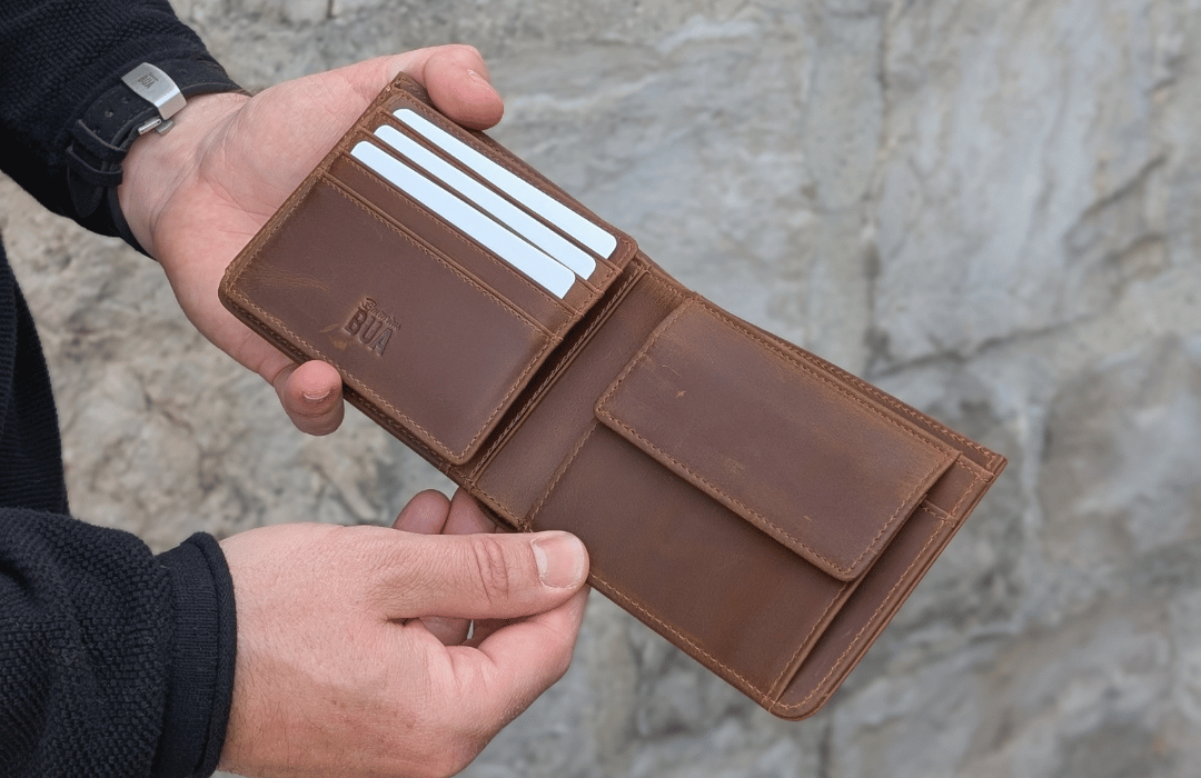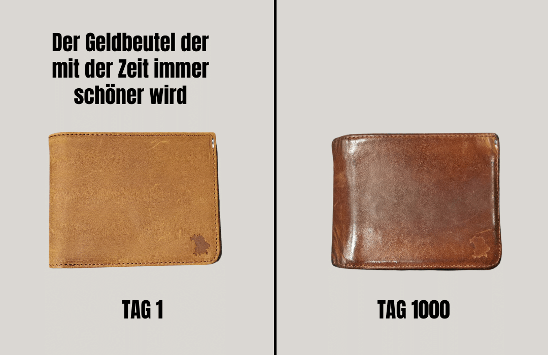 Der Geldbeutel aus Echtleder sieht nach 1.000 Tagen noch besser aus als ganz zu Beginn. Durch das Tragen entwickelt er eine schöne, glatte und glänzende Oberfläche die deinen Geldbeutel ganz individuell prägt. Jeder Geldbeutel ist ein absolutes Unikat und entwickelt seine ganz eigenen Patina.