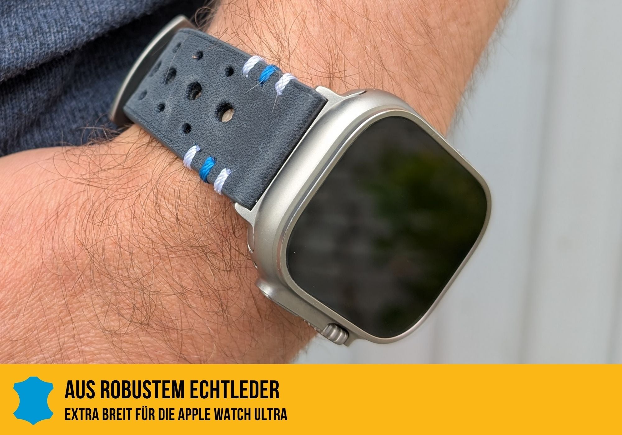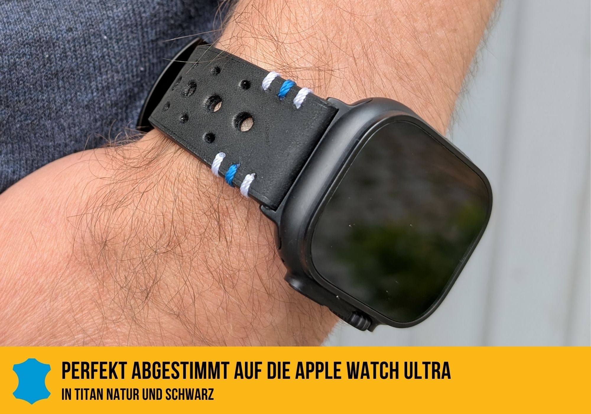 Racing Armband für die Apple Watch Ultra 1, 2 und 3 aus Echtleder | Schwarz